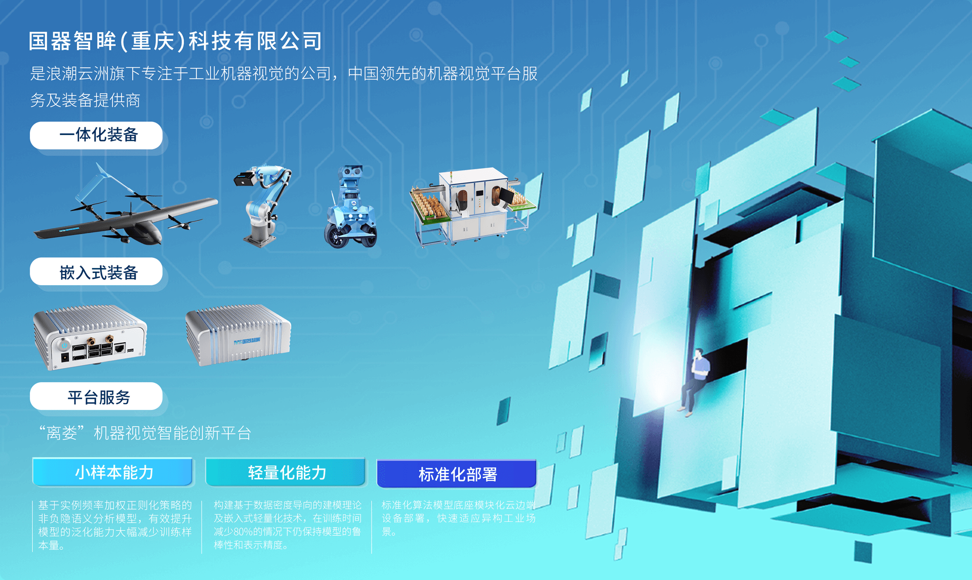 国器智眸(重庆)科技有限公司,浪潮工业互联网旗下机器视觉全国总部项目,中国领先的机器视觉平台服务及装备提供商。基于浪潮工业互联网双跨平台优势实力,以及对39大门类工业现场景的深度观察,依托机器视觉自主知识产品核心能力,以应用场景定义云端合作实体化产品,充分探索社团发展和未来工业的关健需求,为各行各业提供全面技术支持。